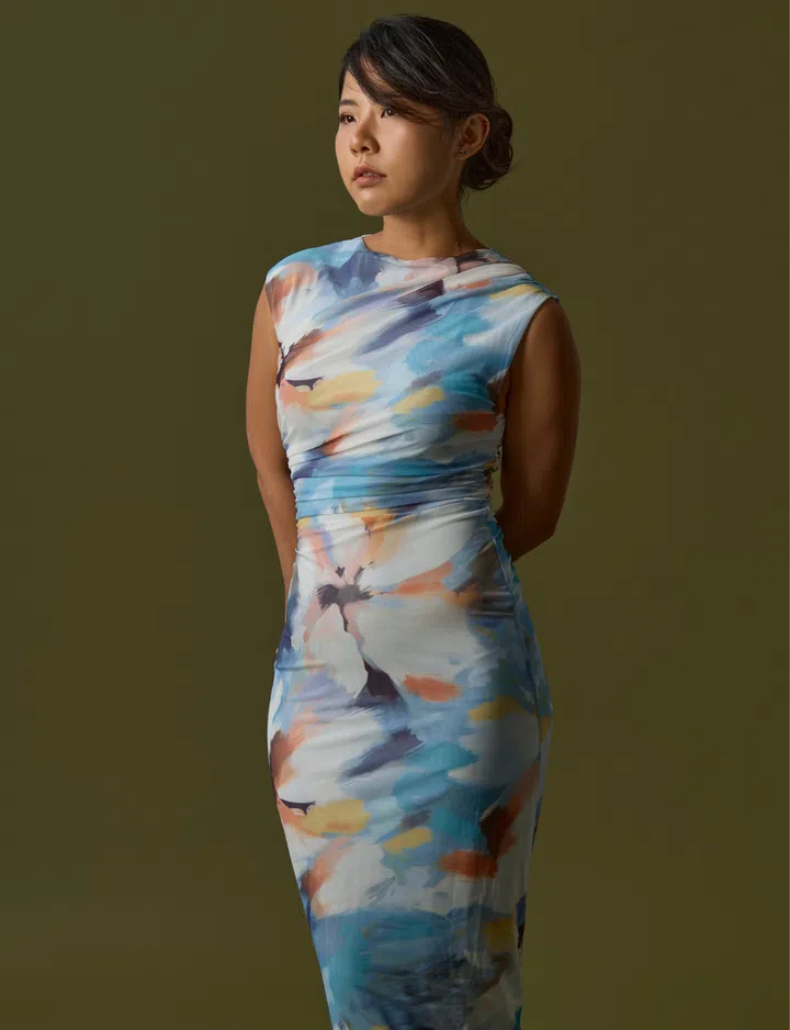 是一件人体躯干的雕塑,以劈腿后弯的姿势呈现。在我看来,该姿势既象征脆弱也代表坚韧:身体与胸腔的敞开表达了赤裸的脆弱,而维持动作所需的力道又展现了持久与内在的力量。