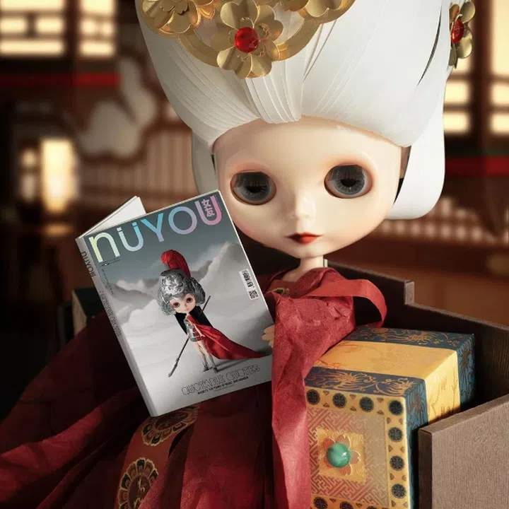 简单来说,就是法国时尚品牌Rabanne为Disney动画人物Mulan“设计”了一套铠甲式银色连衣裙。Mulan是Disney少有的东方人物,所以我在设计时也特别注重这点 —— 试了几种配饰后偶然看到中国传统头盔,就觉得这款带有兽头凤饰的头盔和铠甲很适配,它也是让娃娃化身Mulan的重要一环。