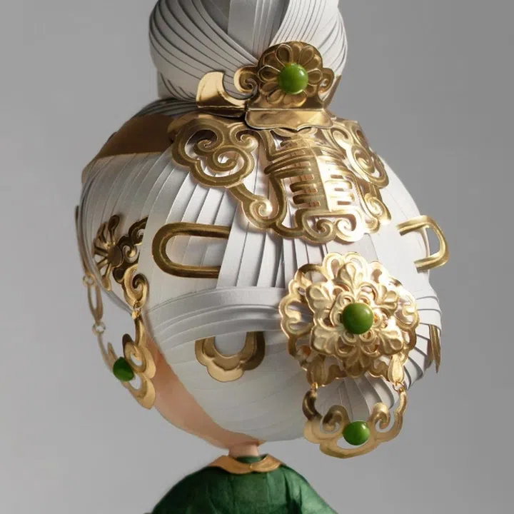 因为有无限可能!大家对纸的认知可能只停留在A4打印纸上,但它其实有不同重量和质感让人发挥。用纸做出唐朝凤钗、雪纺裙,甚至是头发和建筑……种种未知数不仅让我很兴奋,也会好奇自己的极限在哪里。疫情爆发后因无法外出买纸,就只能用家里现有材料来创作,这也是我开始在家为纸张染色的原因之一。
