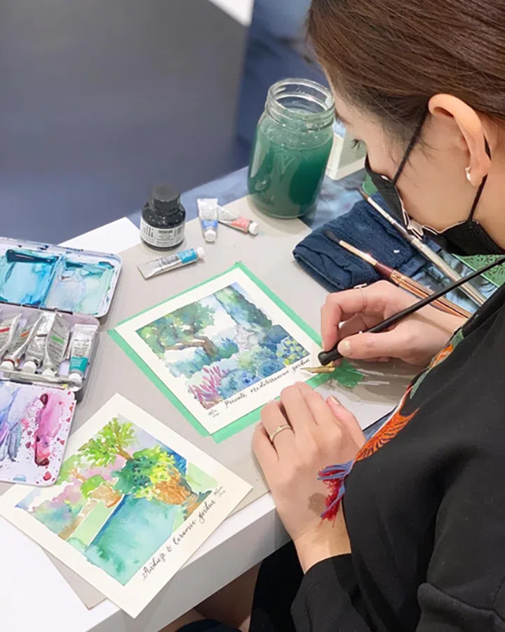 第一次见到Emma是在某品牌的香氛活动上,她在嘈杂环境中待在安静角落全神贯注地作画,身边的一切对她来说都仿佛不重要。也许,这就是对某件事的极热爱表现吧。自小就喜欢艺术的她,现是一名插画师兼自由艺术创作者,除了经营自己的画室,也会开办花卉水彩课程并接商业插画项目。其艺术强项?素描、蚀刻版画、水彩和花艺。