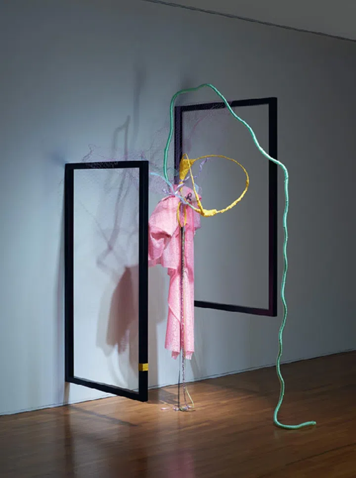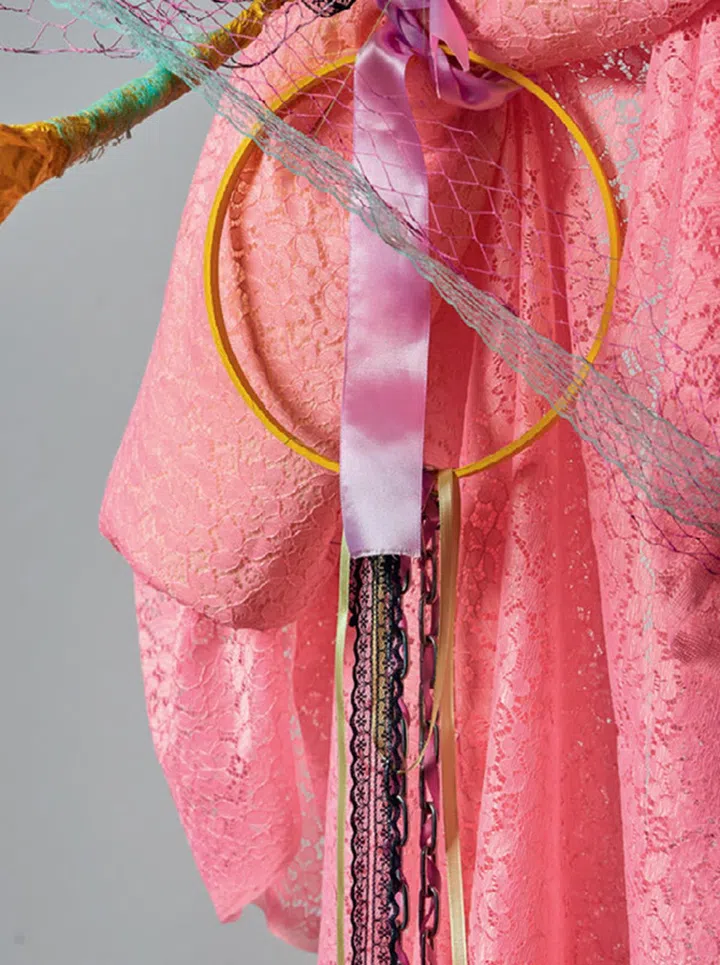 她在大学期间就喜欢在街上收集被丢弃的材料,然后带回去进行重组创作。开始时多是丝网、水管等材质,后来也延伸到蕾丝及缎带等。她的“建筑”艺术没有钢筋水泥般强硬,大多看起来轻盈、脆弱、不堪一击,却其实能紧密连结。这,在主张女性主义、正视女性力量的今天备具启发意义。