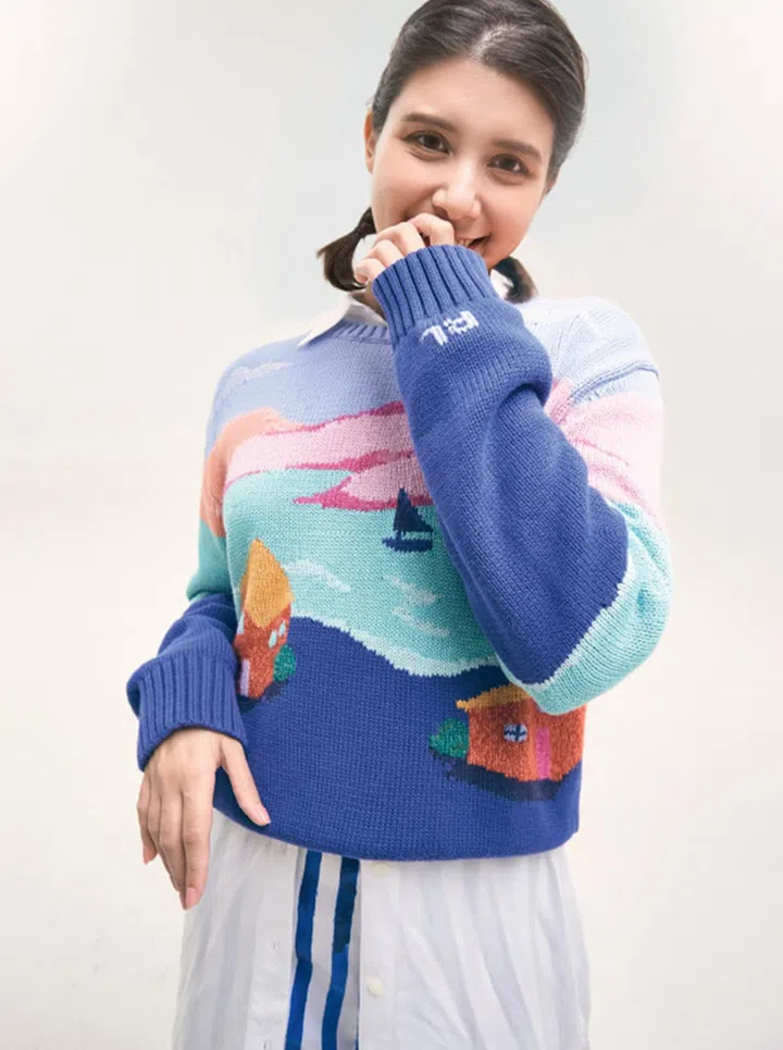 本地艺术家Stephanie Jane BurtPOLO RALPH LAUREN棉质衬衫、针织羊绒套衫、聚酯纤维长裤