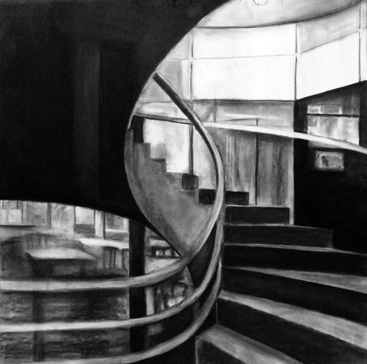 她用炭笔画出唯美的黑白空间
