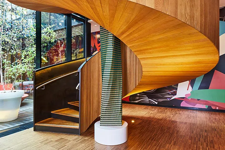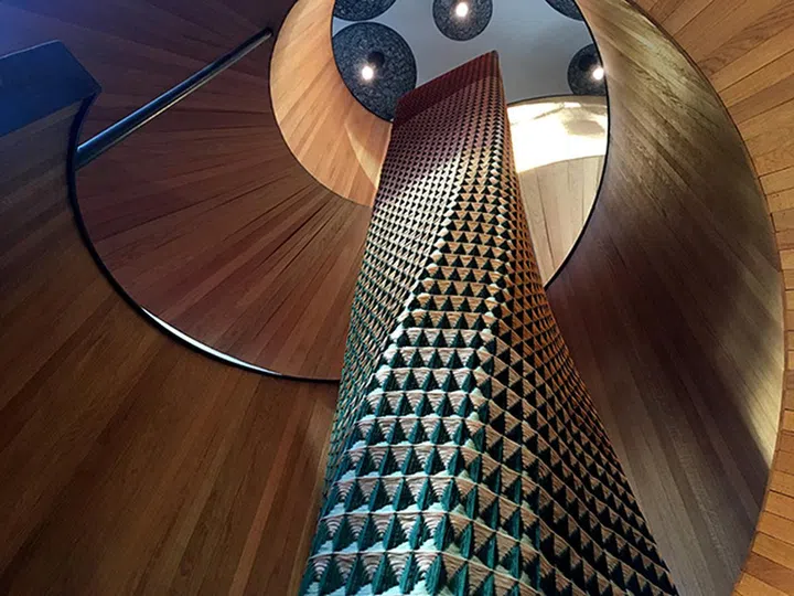 去年9月在伦敦citizenM London Bankside酒店的装置品“The Weaverly Way”,是Tiffany Loy目前规模最大的作品(与英国丝绸工厂Gainsborough Weaving的合作项目)