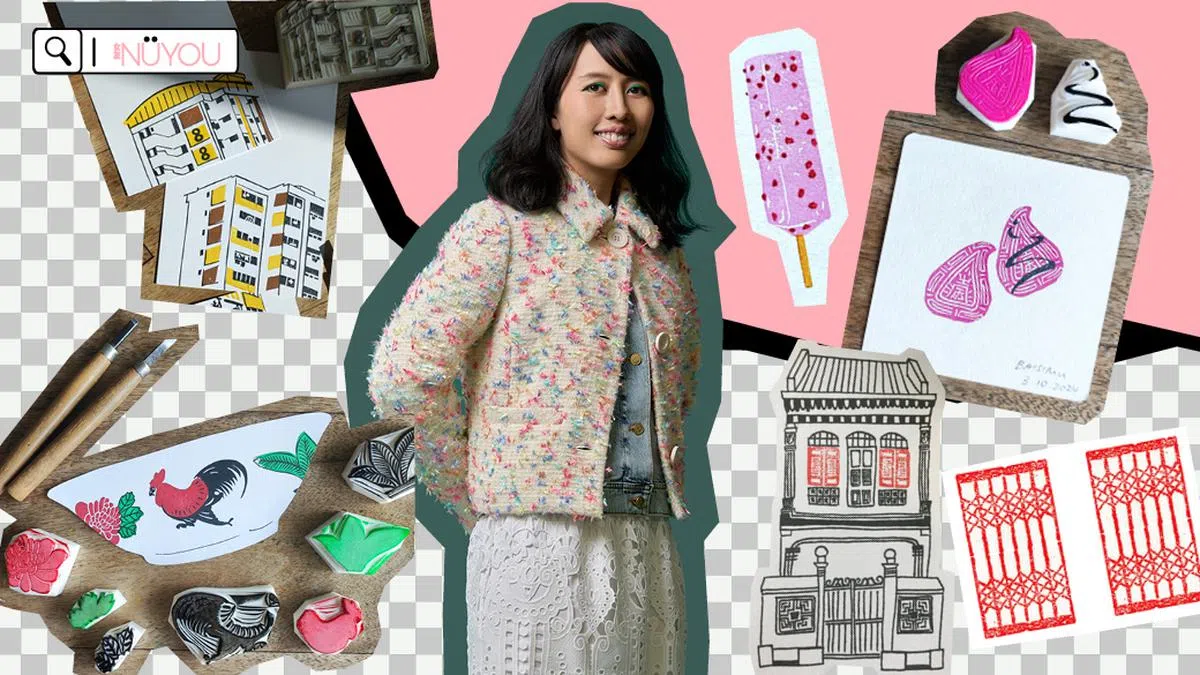 从小在Joo Chiat一带长大,对那里的老店屋有很深情感。外婆还在世时,我常随她到不同的庙宇拜拜。那些画面都深植在我脑海中,创作时就会自然浮现。我曾把万寿山寺庙的地砖纹样刻成印章——每次外婆烧香拜拜时,我就会研究地砖并观察其纹样。我喜欢将这些老建筑的小元素刻印出来,如旧式门窗、屋瓦、楼梯等。它们可能面临被拆除的命运而渐渐消失,但却得以在我的作品里被保留下来,对我来说别具意义。