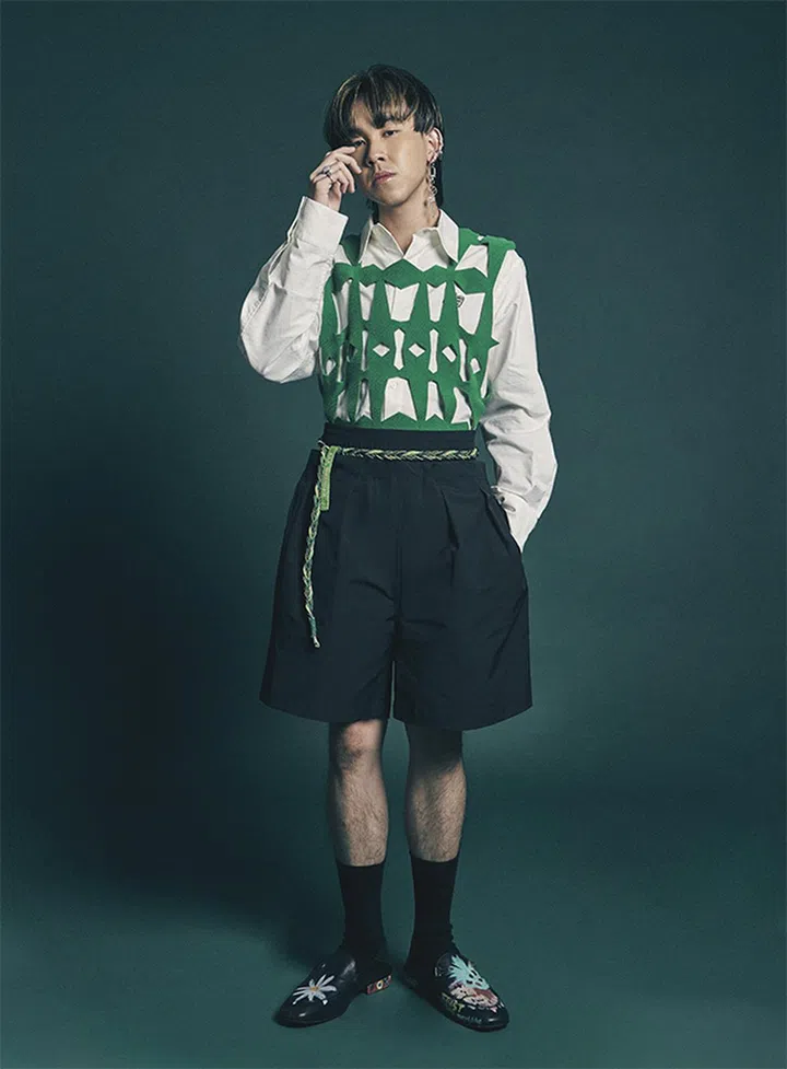 8ON8棉质衬衫、羊毛及聚酯纤维混纺上衣, All Beings聚酯纤维短裤 (皆售于YOURS),人物专属皮鞋、长袜、首饰