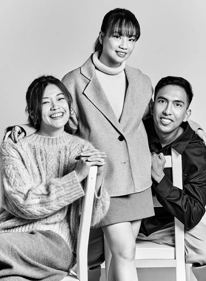 (左起: Jia Li, Debbie and Luqe)COS毛衣 (POA) 长裤$190 耳环:造型师专属 COS外套 $290 (上衣与裙子:造型师专属 ) COS外套$150 长裤 $175