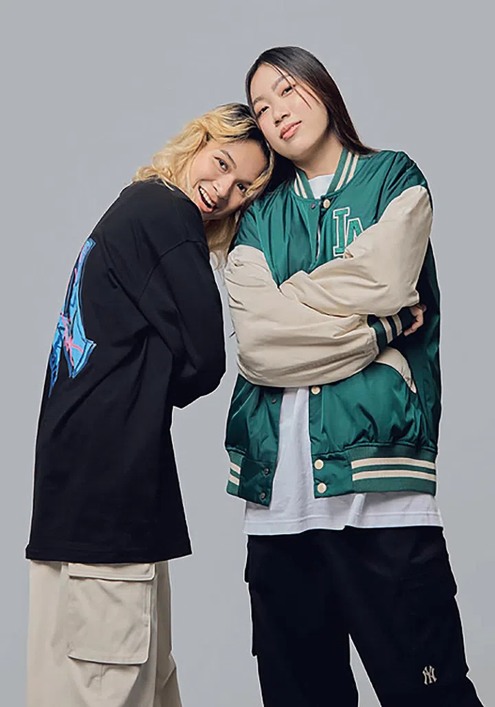 (On Samantha)MLB棉质套衫及长裤(On Phoebe)MLB尼龙外套、棉质T恤、棉质长裤