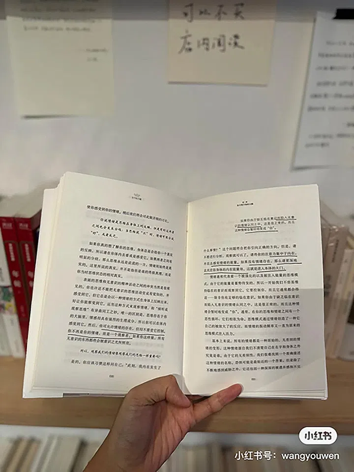在未完成书店里可先翻阅书籍内容。(图取自@花小拼)