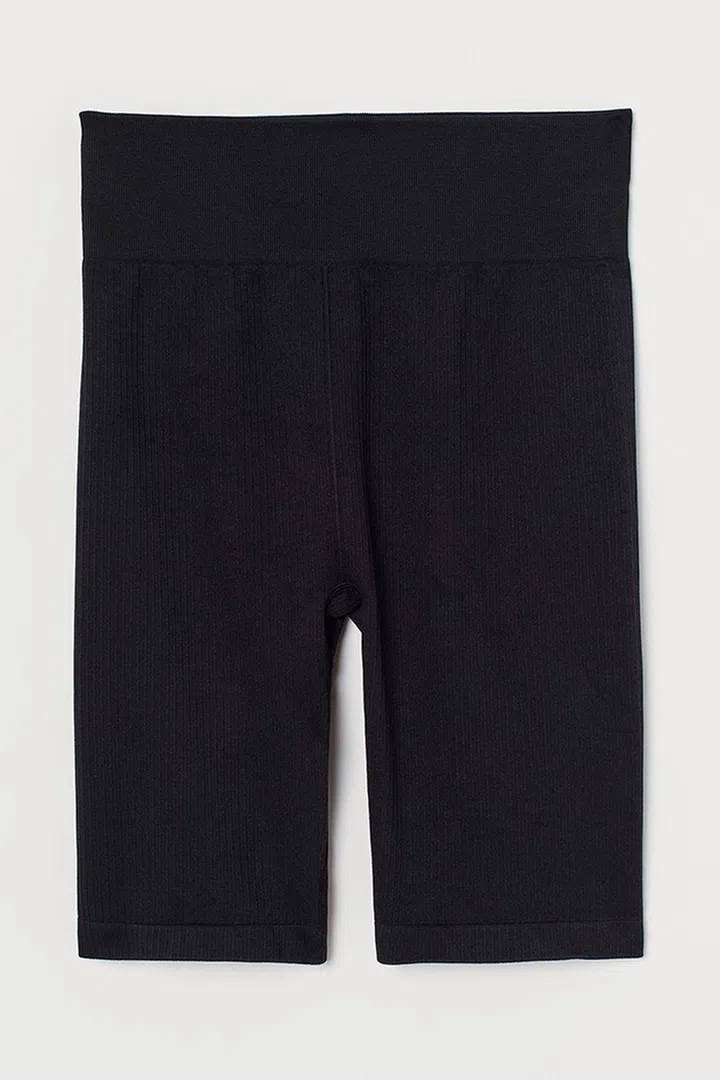 运动单车风格的紧身短裤流行不退,不运动的时候,搭配长款T-shirt、套衫或者西装,让它的利用率更高。