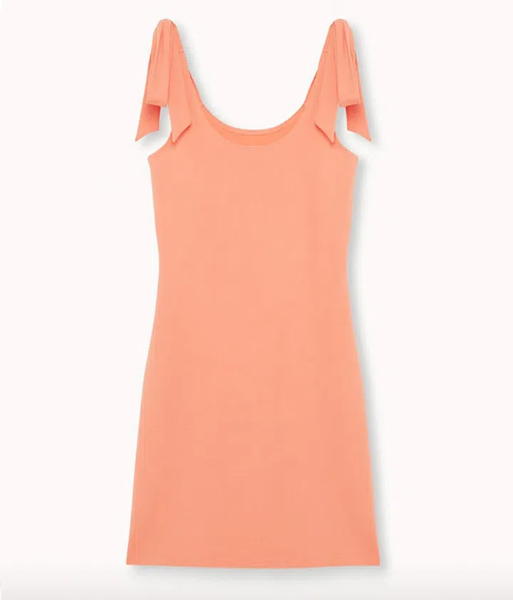 桃色(peach)及珊瑚粉(coral)也是格外抢手的人气色,赶快在断码前入手哦。这款连衣裙采用bow tie肩带,为简约设计增添活泼感。