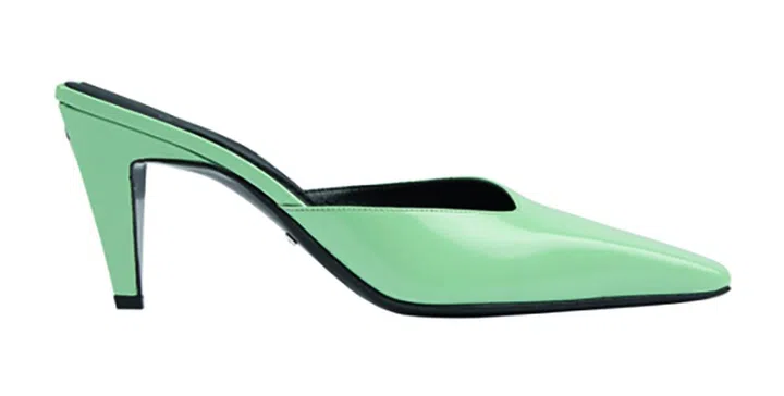 这款穆勒低跟鞋设计源自品牌1990年代的典藏款式,犀利的线条充满几何美感,风格简约大气,穿着便利,易于搭配。