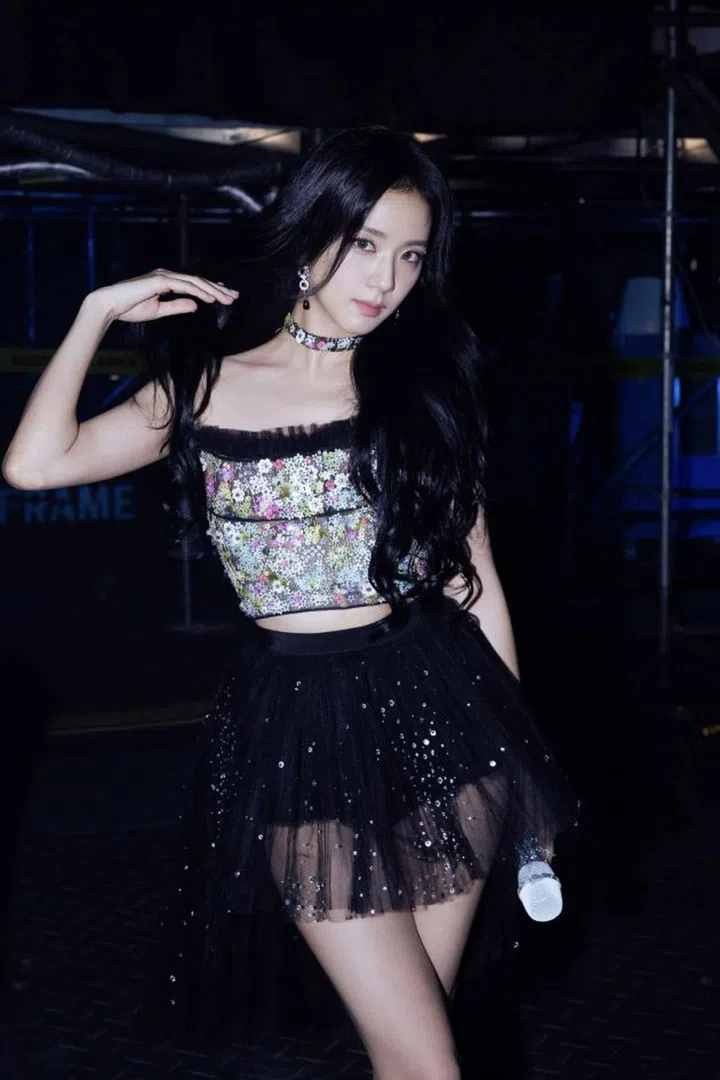 2023年Blackpink在首尔演唱会的舞台造型,Jisoo这身Dior梦幻花卉装,是由Maria Grazia Chiuri为其特别打造。该上衣刺绣精致的蓝、粉、绿调花朵,作为对Dior先生热爱自然和植物的微妙致敬,而下身的黑色薄纱裙,则在舞台上展现出奇妙又灵动的光线效果。