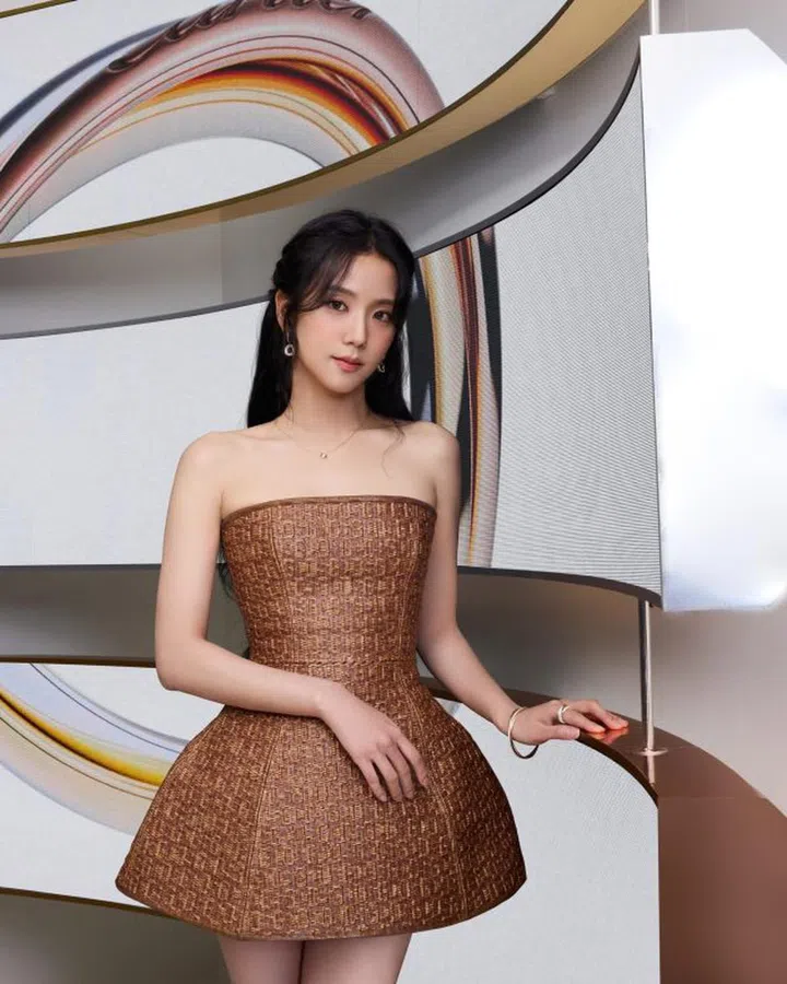 Jisoo出席Dior 2024年秋冬高定大秀,穿着品牌2025年早春度假系列造型搭配Lady Dior手袋,洋娃娃般的发型和妆容让她看起来像一位古典又梦幻的贵族公主。