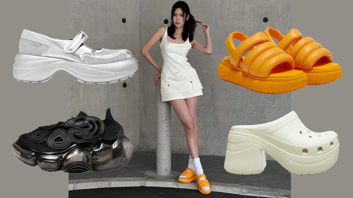 来自东京鞋牌Grounds的“气泡鞋”,NewJeans在《Super Shy》MV中也曾穿着。品牌的设计理念源自于日本年轻人的审美观,其标志性的鞋底造型不仅增加身高,还穿着舒适,而且因吸引人的视觉元素备受时尚潮人追捧。