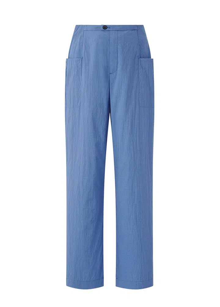 Seersucker (泡泡纱)制作的九分裤,长裤刚好露出脚踝,穿起来轻盈、透气,搭配高跟鞋,可展现干练女性美。