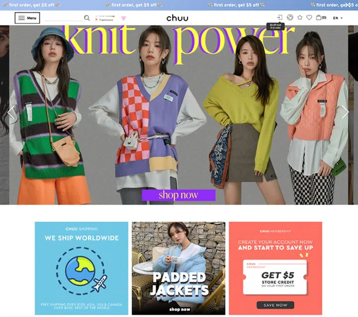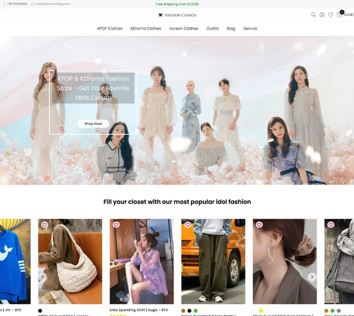 Fashion Chingu,顾名思义就是你的时尚伙伴,专售韩国明星引领的潮流穿搭。最火明星穿搭搜寻有BTS、Blackpink、IU、GOT7、炫雅等等。要追随心目中的偶像穿搭,Fashion Chingu是你少不了的购物网站。