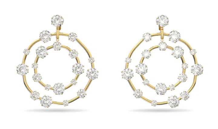 来自Constella系列超大水晶耳环,采用耳夹式设计,让没有耳洞的人也可以佩戴。大小圆环没有固定而是可以轻轻转动,让造型更加灵动。一戴上它,马上就能让日常造型瞬间升级party look。