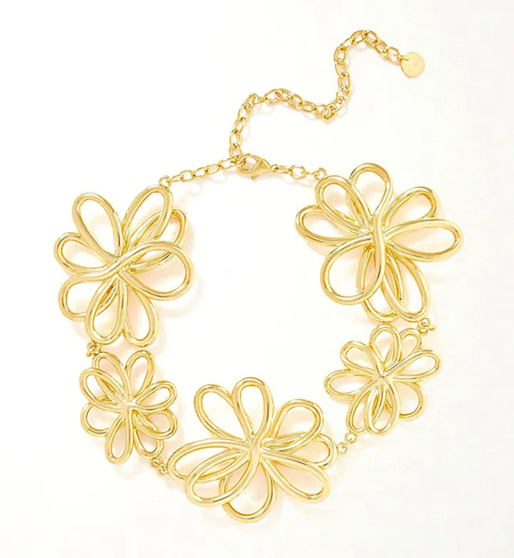 喜欢通透但瞩目的设计?Cult Gaia的镂空Blossom项链推荐给你。这款以金色金属缠绕组成的项链,犹如可穿戴的艺术品,抢眼但不浮夸,让你佩戴起来个性十足,轻盈又随性。