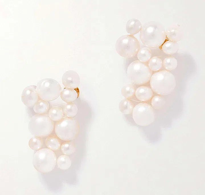 大小不一的珍珠缀饰,犹如可爱的气泡般簇拥在一起。佩戴起来时造型独特又醒目,可搭配单肩修身连衣裙穿着,展现出你性感妩媚的女人味。