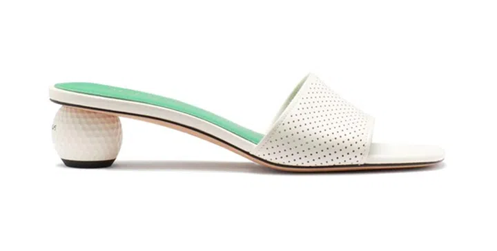 如果你的公司或职业对于拖鞋或凉鞋没有特别限制,上班时穿上这款以nappa皮革制作的清凉低跟凉拖也是不错的选择。爱“玩”的品牌以高尔夫球为灵感,将鞋履打造出绿茵球场的氛围,尤其适合拜五时的欢快心情。