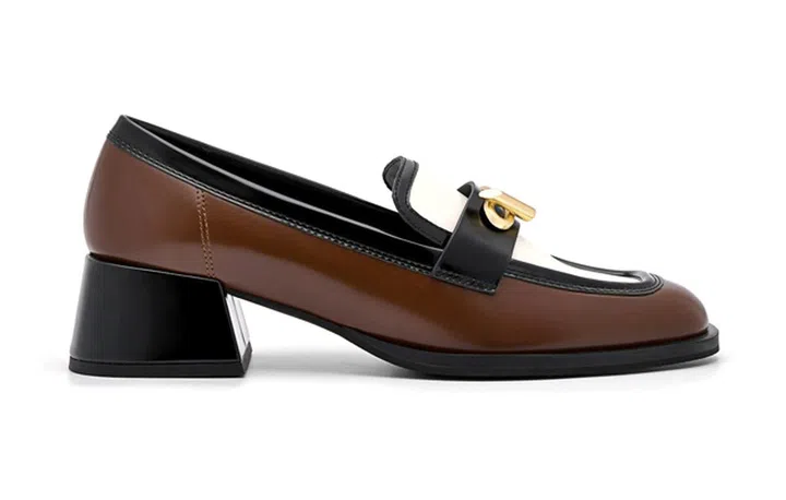 风格干练的拼色款乐福鞋,4cm的低跟为中性风鞋履注入一丝低调女性美。平时搭配休闲西装裤、西装短裤或阔腿牛仔裤,造型又飒又随性。