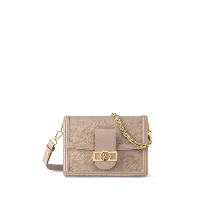 设计灵感源自1976年推出的Sac Dauphine,于2019年被品牌重新诠释。设计团队保留原版的金属搭扣,却更新搭扣上的“LV”圆环标志,并为系列手袋添加更具个性的金属链条。上图这款Dauphine MM 手袋采用Epi皮革搭配金色硬件,同时,在光滑牛皮饰边的衬托下,Epi皮革上的压花图案也显得更加突出。