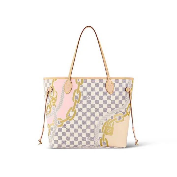 Neverfull手袋于2007年首次推出,其“永不满”的名称,强调了这款手袋宽敞、多功能和耐用的特点。而且,其提手看似精细,但其实经过了双层缝制和加厚支撑,据说可以承受超过200磅的重量。Neverfull手袋推出过不同的颜色、材质和印花选择,包括Epi皮革、Damier帆布、Mini Lin帆布、Monogram Empreinte皮革等,还有各种限量版及特别设计以满足不同的季节和风格需求。上图这款Neverfull,就采用了带五种色彩的航海印花Damier Azur涂层帆布,为经典棋盘格图案注入新的活力。