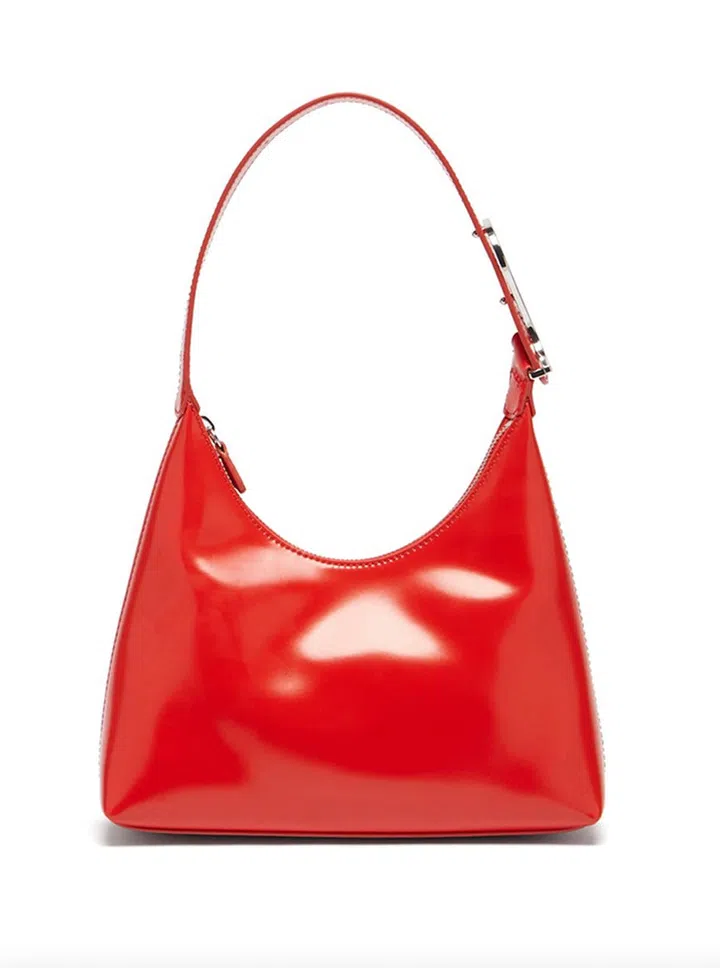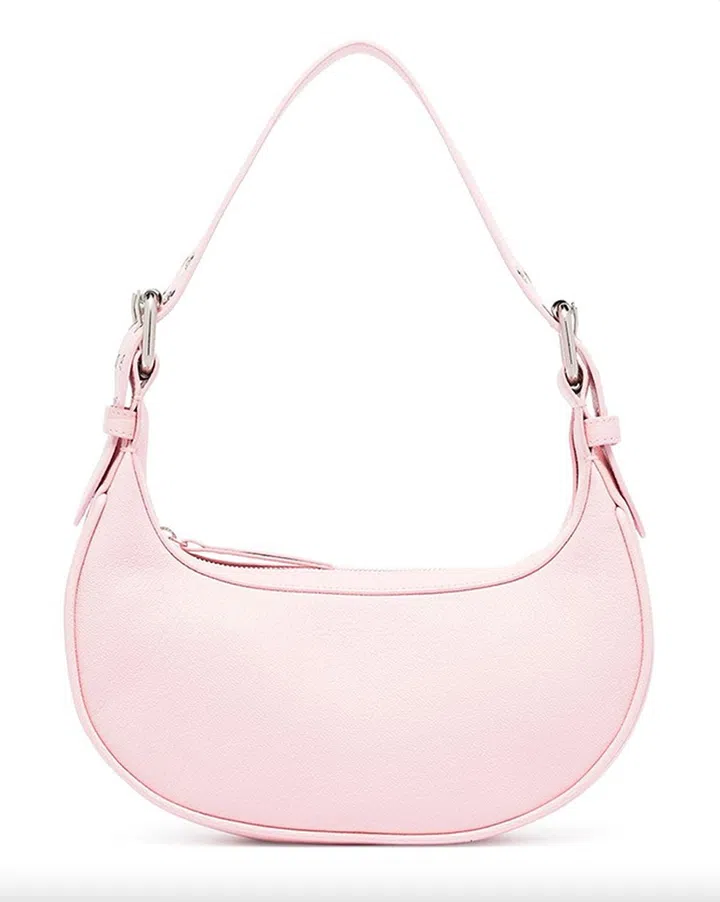BY FAR的淡粉色流浪包,设计源自2000年代初时尚风潮,背在身上也是一款“腋下包”。
