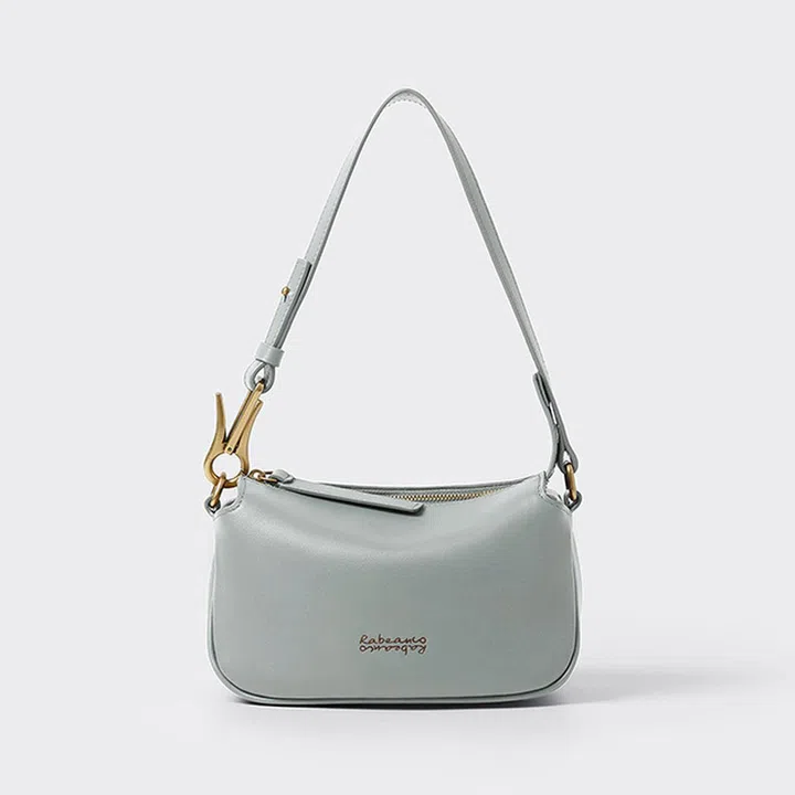散发1990年代风格的长款腋下包,同时轮廓简洁、优雅,彰显现代美感。正前方装饰品牌标志性金属杆,在灰色包身上闪耀优美光泽。