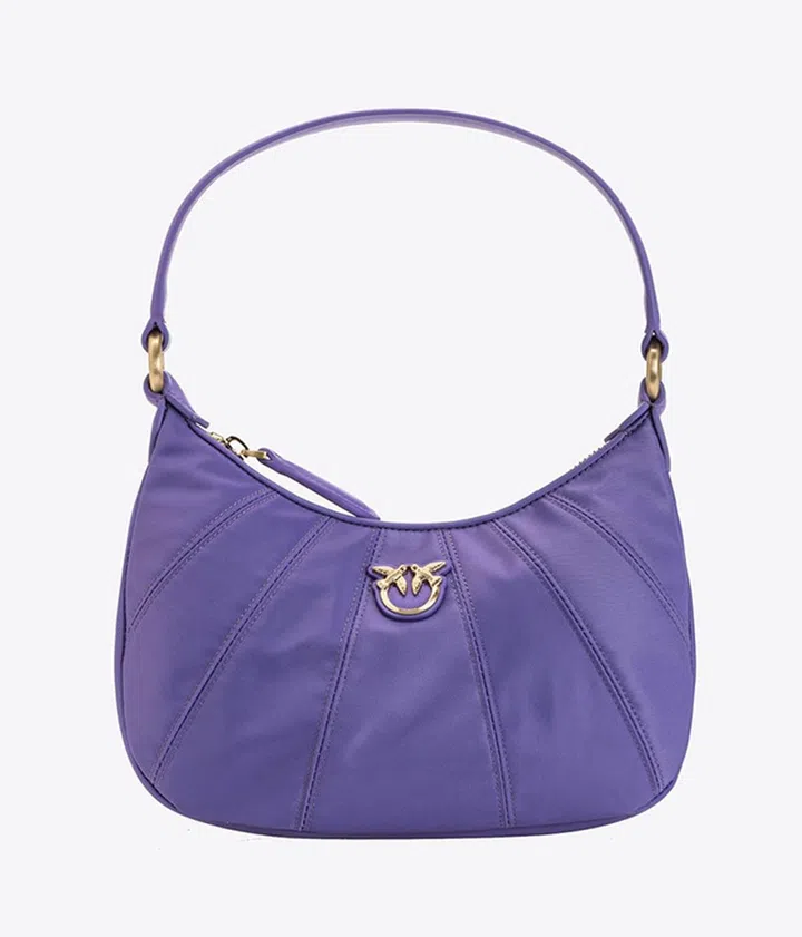 这款半月形肩袋采用100%回收尼龙制作,拥有玫红、橄榄绿、浅蓝、苹果绿等丰富配色,休闲的日子里背出去玩,一定很上照。