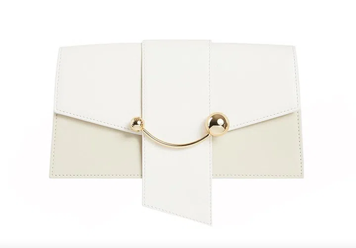 这款白色Mini Crescenti手袋则将金属杆凹出弧形,令造型充满趣味。除了短版肩带供你肩背,也有包链让你轻松斜挎,白天晚上都好搭。