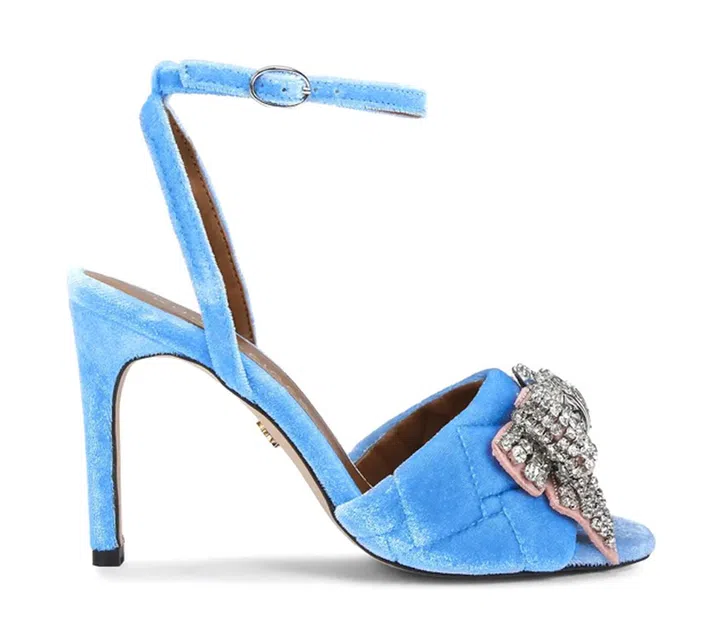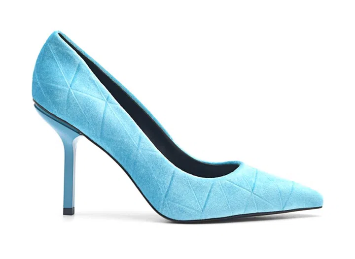 如果你已经有一两黑色或米色细高跟,不妨试试彩色款式,或许能让你眼前一亮。而且这种蓝色很显腿白哦,搭配白色迷你裙礼服,让造型清爽又不枯燥。