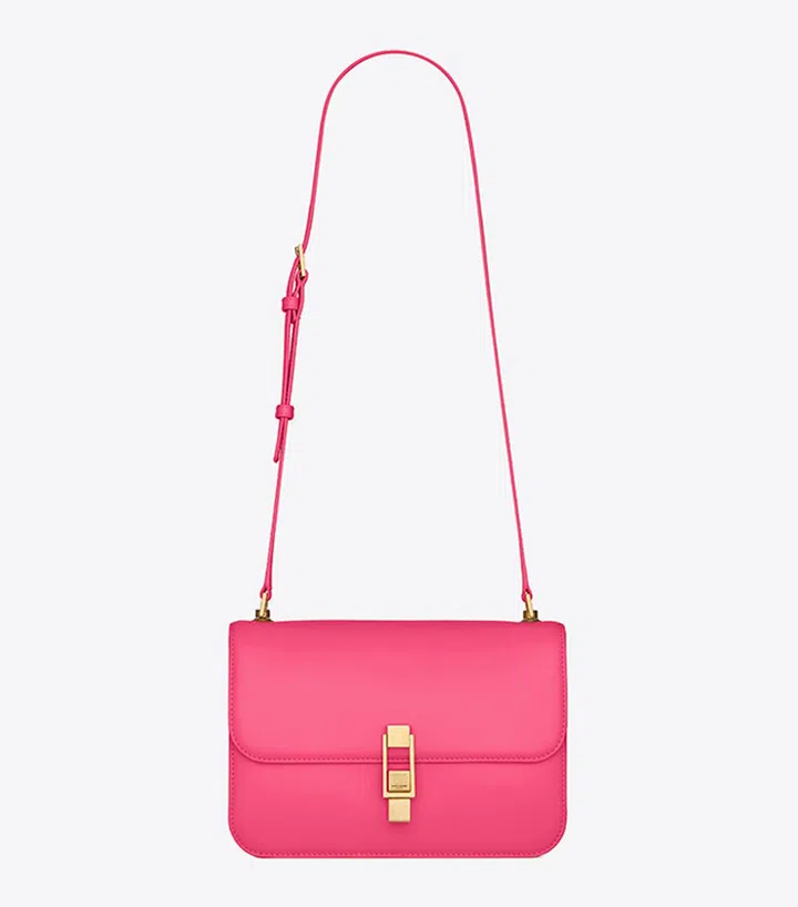 该手袋拥有10多种配色,小牛皮材质柔软光滑,廓形简约、利落,既能当上班包,也适合约会、度假携带。