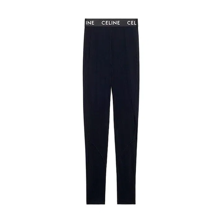 科技面料黑色高腰紧身裤袜,仅在裤腰处装饰CELINE logo字样。当作西装/外套搭配单品,或者运动装都适合。叠搭短裤,你还能用它塑造出“露底裤边”的同样效果。