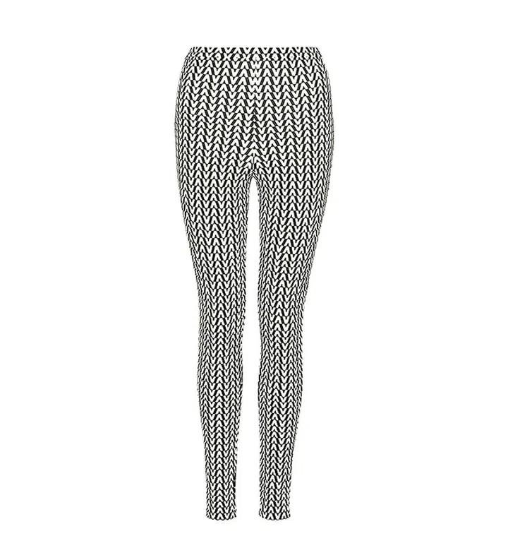 装饰品牌“V”字母monogram图案的Optical Valentino Jersey leggings,可学模特搭配同款紧身上衣,外面罩上一款小外套或开衫,再穿上帅气军靴。