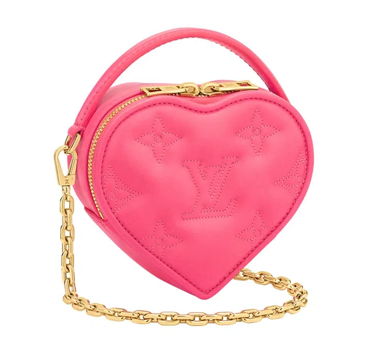 Louis Vuitton为情人节推出含最新皮具及配件的胶囊系列,并为各款经典样式装饰上应节的丰富色彩,如上图这款Dragon Fruit色调的心形链袋(也有Lilac色),还有Miami Rose色及Vert Pomme色的小型皮具等。