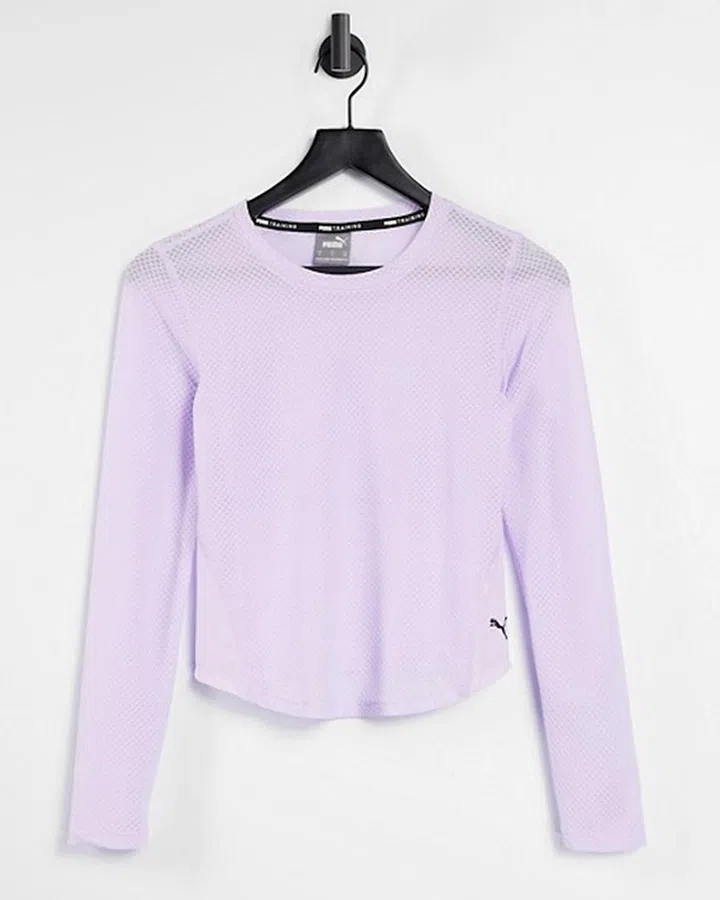 比如这款Puma的网纱上衣,就既有运动风格,又极具时尚感。其香芋色调也显得格外甜美、清新。