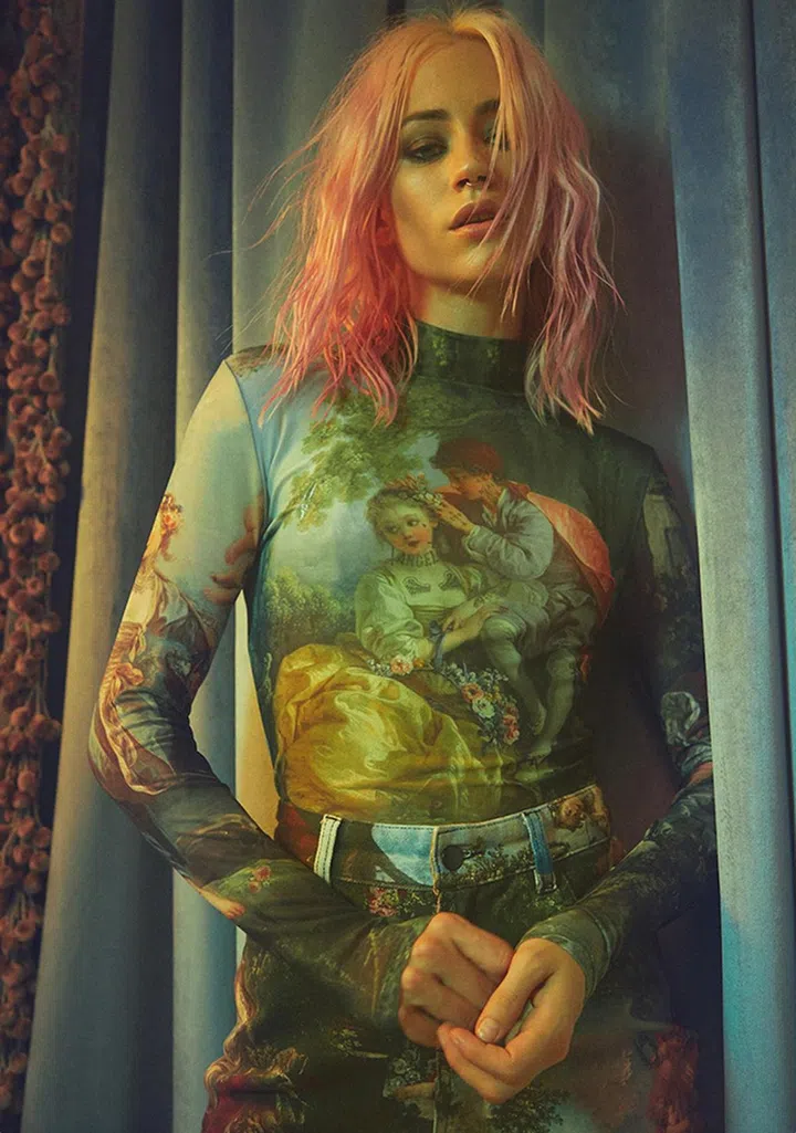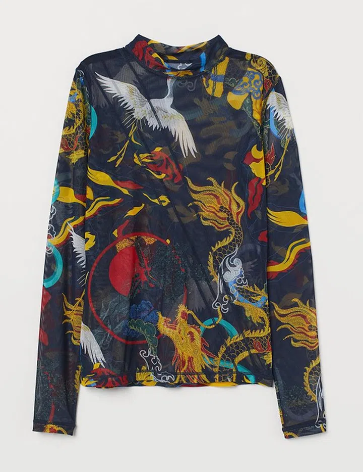 文艺复兴风格是今年春夏的流行元素之一(如Max Mara、Dolce&Gabbana及Dior高定系列等),入手一件颜色丰富,图案抢眼的mesh top,穿在白衬衫下当内搭也很美。