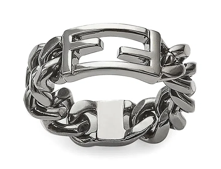 Fendi标志性的“FF”从包扣,诠释到服饰,现在更能佩戴在指间,绝对是Fendi粉丝们的必备!搭配刚硬的链条设计细节,这款戒指完美平衡现代男性的精致与时尚气息。