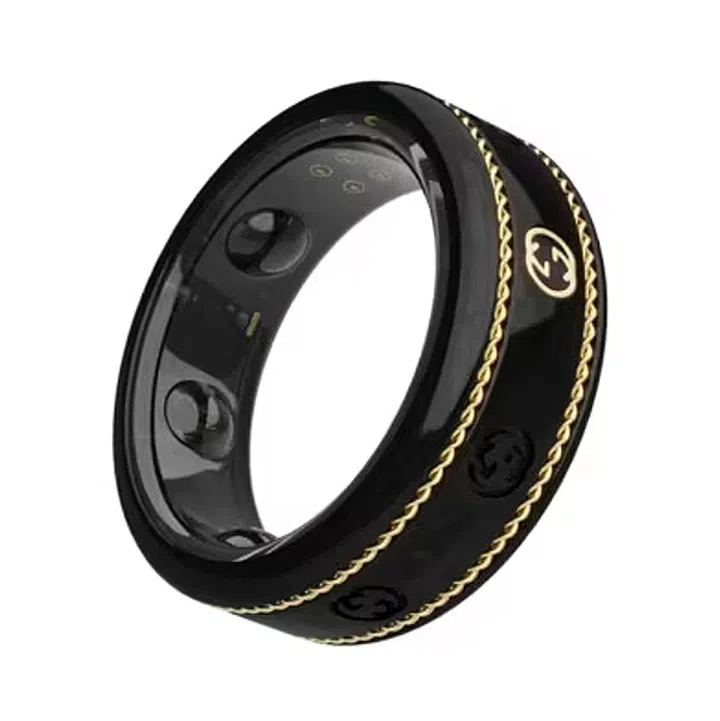 Gucci与芬兰健康科技公司Oura,结合自家最拿手的时尚美感与健康科技技术,打造出这款能测量睡眠、活动指数、体温等数据的智能戒指,为你解码日常身体状况。这款戒指以黑色戒身,搭配黄金色“GG” 的设计,同时充满了动感。