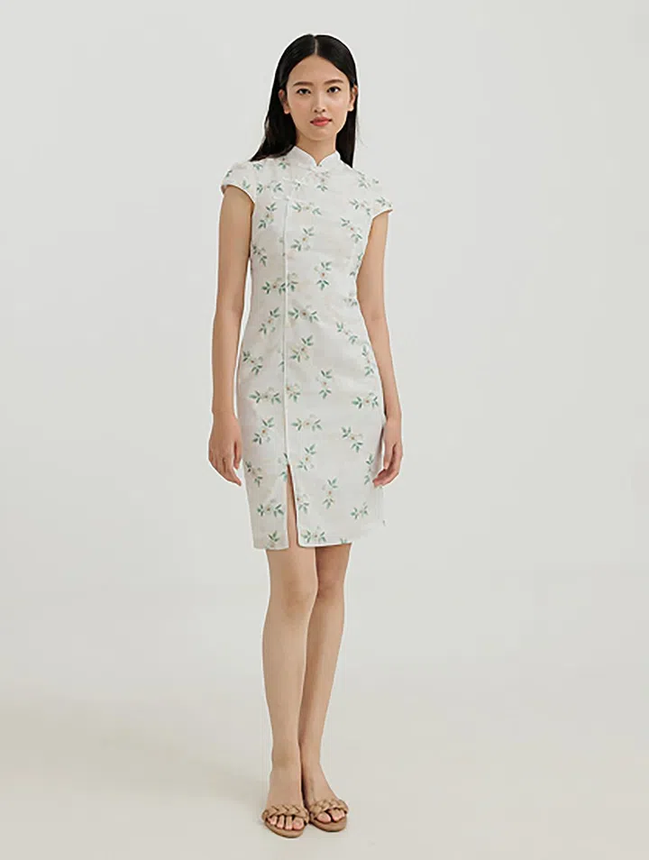 Fayth的这款白色旗袍温婉可人,腰线处带有收腰的设计,穿上后很显身材噢~ 出门拜年前,简单将头发盘起/微卷,立马get一个很有氛围感的造型。