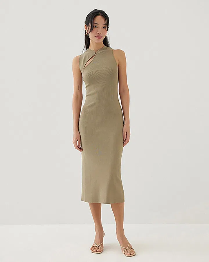 Love, Bonito的这款针织连衣裙简约却不简单,“中西合并”的版型很是吸引眼球:领结处的设计灵感取自传统旗袍,胸口上方+后裙摆的镂空设计小露性感,连衣裙的贴身剪裁也很显身材 —— 除了拜年时能穿,这也是一件能穿去上班的连衣裙噢。