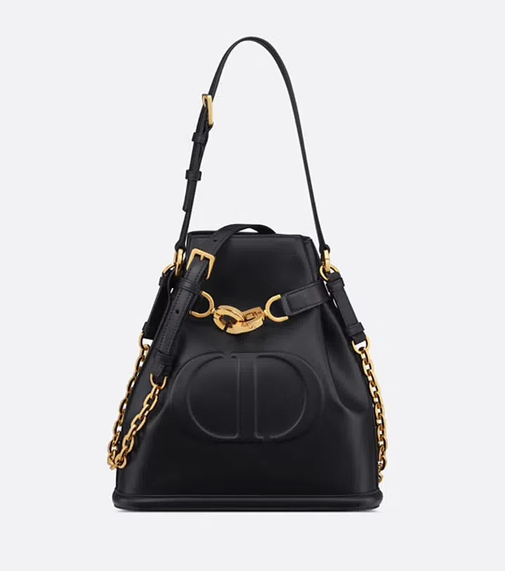 Dior 2023年秋季推出的C'est Dior水桶包,通过烫印的手法将品牌创办人Christian Dior的名字缩写,作为花纹呈现在包包上。手袋的CD锁扣以旋转D字母装饰,顶部手柄可调整长短,并配备可拆卸包链——让你随时可把它变身成一款便利的斜挎包。