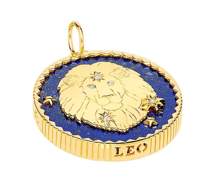 Tiny Gods是由Mary Margaret Beaver与2020年11月创办的珠宝品牌——别看品牌年轻,其创办人却拥有逾20年的珠宝行业经验,如今终于如愿打造了她的个人fine jewelry品牌。这款在巴西手工制作的狮子座项坠,采用五颗钻石(意在以幸运数字凝聚平衡、积极的能量)点缀狮首图案,背景则是神秘、迷人的青金石,设计极为精美。