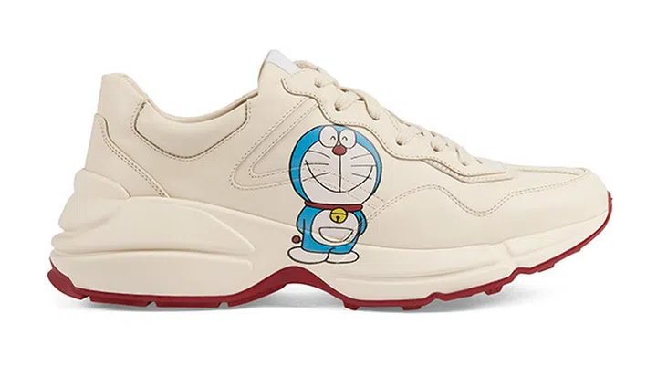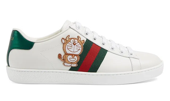 Gucci今年携手刚过50岁的日本“未来机器猫”Doraemon(哆啦A梦)推出胶囊系列,请回顾这篇用任意门走进GUCCI X 哆啦A梦的世界。有趣的是,为了配合金牛年,Ace球鞋上的哆啦A梦还加上了牛角造型。