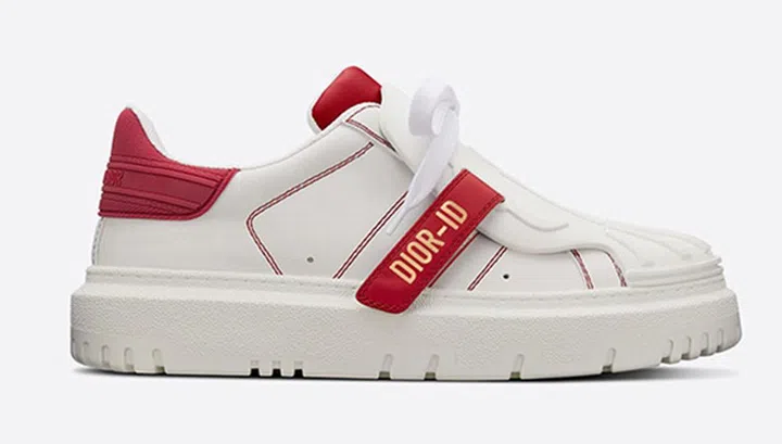 常穿小白鞋,又想为新年添点红?这款双色造型的DIOR-ID球鞋,鞋面装饰对比强烈的缝线设计,并采用金色+红色搭配的粘式鞋扣,整体外观现代、入时。