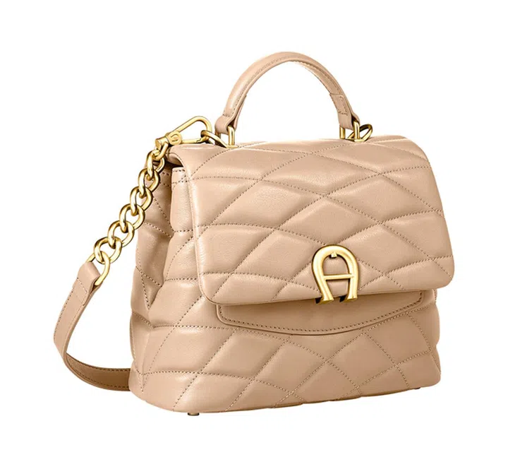 杏仁米色的优美手提链袋,以独特弧线绗缝设计装饰皮革袋身,手袋轻盈且采用磁性开合。日常当作通勤包,不仅能储放不少物件,而且手袋外观优雅百搭,各种场合都能应对。