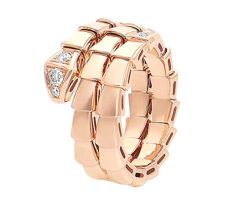 说到Bulgari的宽戒指,你可能首先想到品牌的B.Zero 1系列。但品牌这款缠绕设计的Serpenti Viper,以神秘优美的灵蛇造型包裹手指,既能展现出宽戒指般的抢眼效果,带有一丝动感与灵性。