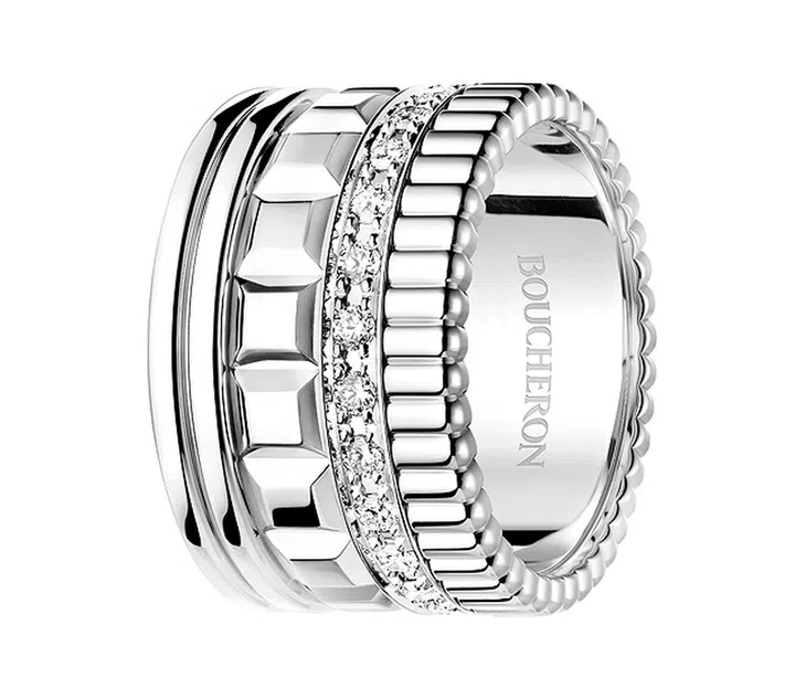 品牌在佳节之际推出“Boucheron Wonderland”企划,邀请其代言人Alexa Chung、Mila Al Zahrani、昆凌、高允贞(Youn-Jung Go)及Rola挑选假日精品演绎时尚魔力。其中Alexa Chung挑选的这款Quatre Radiant Edition镶钻大型白金戒指,是为庆祝品牌位于Place Vendôme的精品店120周年推出。造型层次丰富却又保持纯粹简约,佩戴起来格外瞩目。